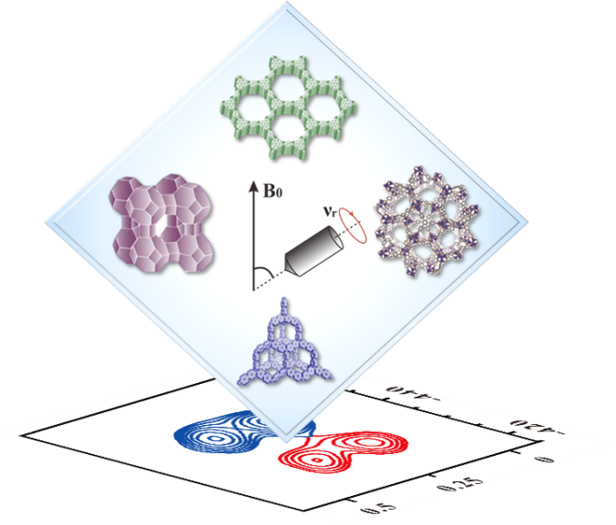 微孔材料(孔径< 2nm )包括沸石分子筛、 金属有机框架材料(MOFs)、 共价有机框架材料(COFs)、 多孔芳香骨架材料(PAFs)、 氢键有机骨架材料(HOFs)、多孔层状材料等方面, 在工业催化、吸附与分离、气体储存、化学传感、药物控释等领域被广泛应用。研究并理解微孔材料结构与性能之间内在的构效关系对应开展与应用高性能材料都具有十分重要的意义。固体NMR作为晶体学衍射方法的重要补充,能从原子分子水平揭示原子核的化学环境以及化学键/空间连接网络,并且不受材料体系有序度的影响和制约,已成为研究微孔材料结构性质的重要实验手段。微孔材料元素组成、多维结构以及其具有的多功能性给固体NMR谱学表征带来很多挑战,近些年来固体NMR技术与方法处于快速开展阶段,高场强、高转速、超极化技术(如DNP、PHIP)以及先进的脉冲实验方法提升了固体NMR的研究能力,拓展了其在微孔材料中应用的宽度和深度。