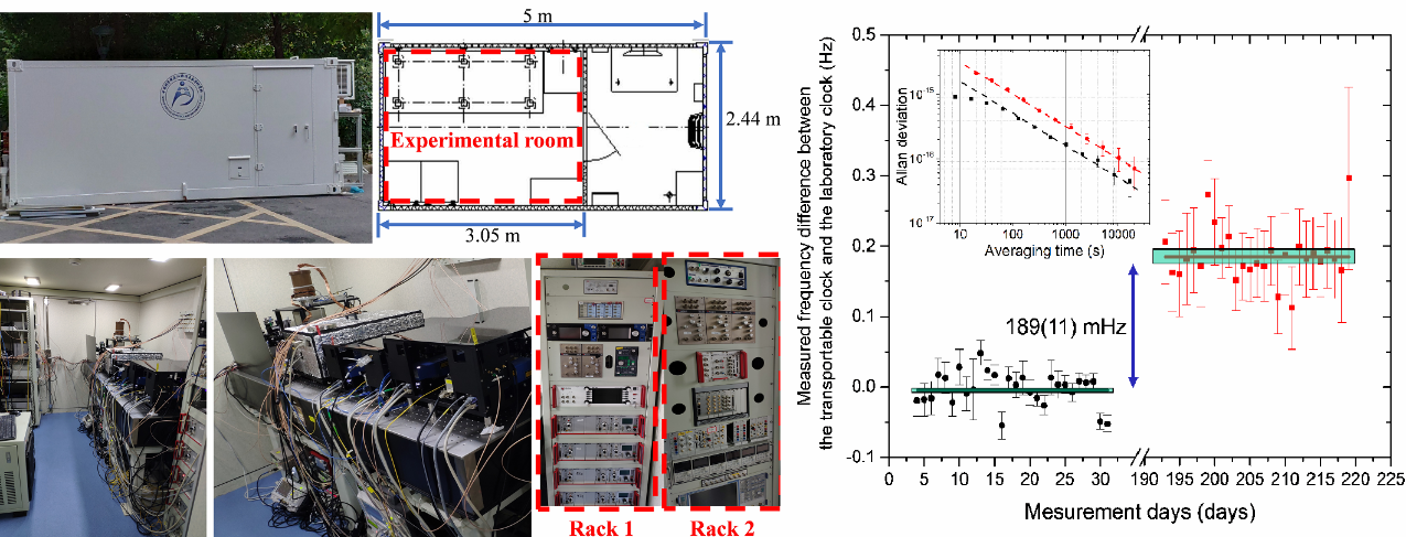 同时,研究团队成功研制出一台车载钙离子光频标,演示了顺利获得光频标比对实现高程差测量的可能性。研究团队随后将该车载光频标从武汉搬运至北京,实现了20天的准陆续在运行;并同中国计量科学研究院合作进行了光频标钟跃迁绝对频率的测量,测量不确定度达到5.6×10-16。研究成果发表在《物理评论A(Phys. Rev. A)的快速通讯(Rapid communications)上。