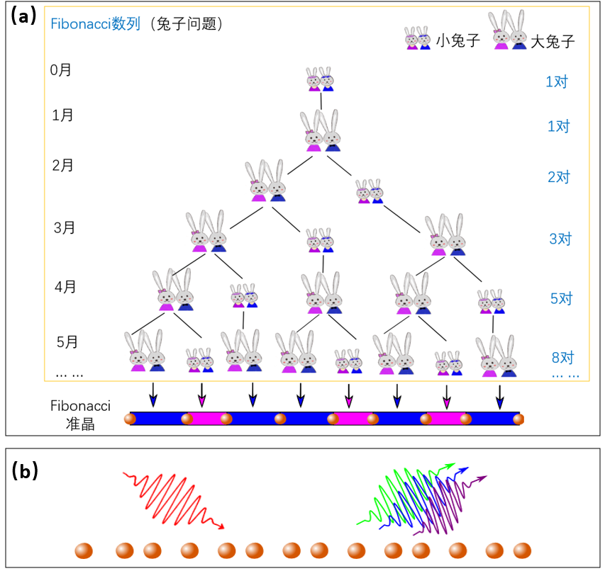 (aFibonacci数列(兔子问题)与Fibonacci准晶之间的关系示意图。(bFibonacci准晶高次谐波示意图