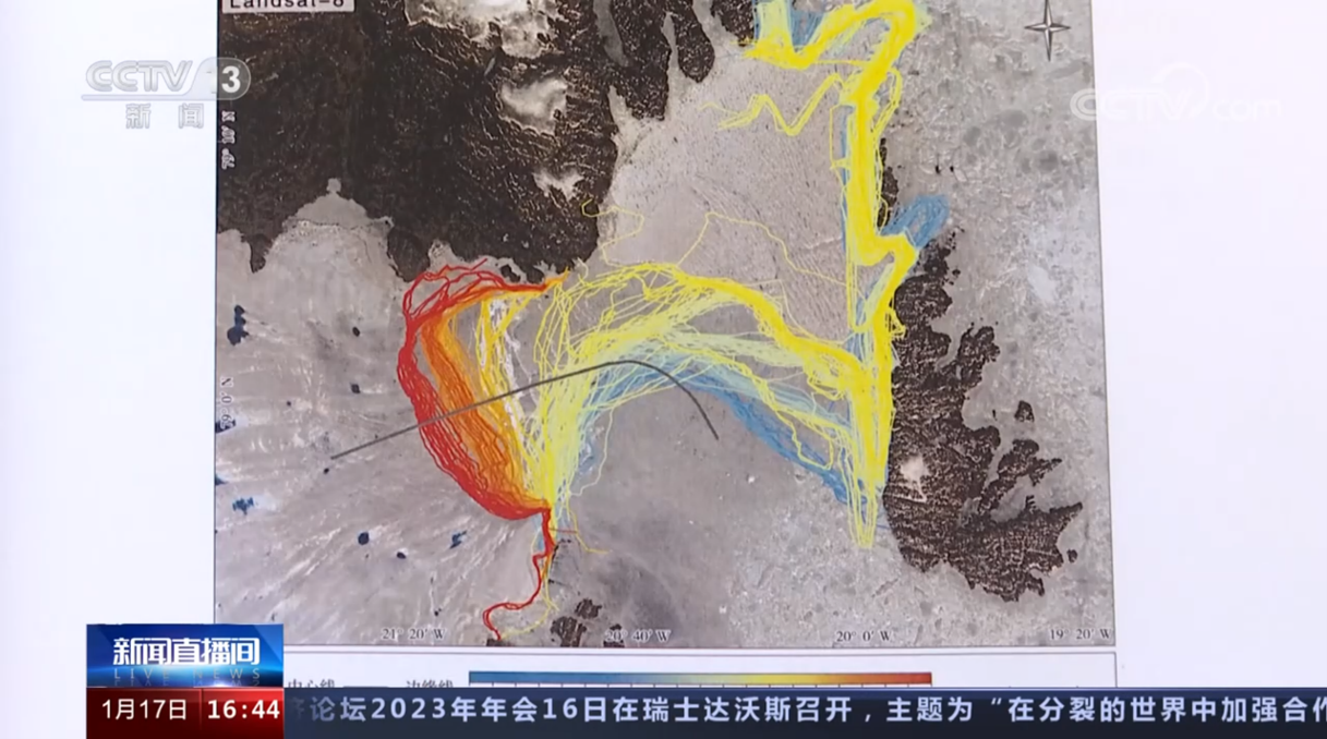 2002—2021年格陵兰Zachariae Isstrom冰川边缘线变化(图片来源: CCTV-13新闻频道报道截图)